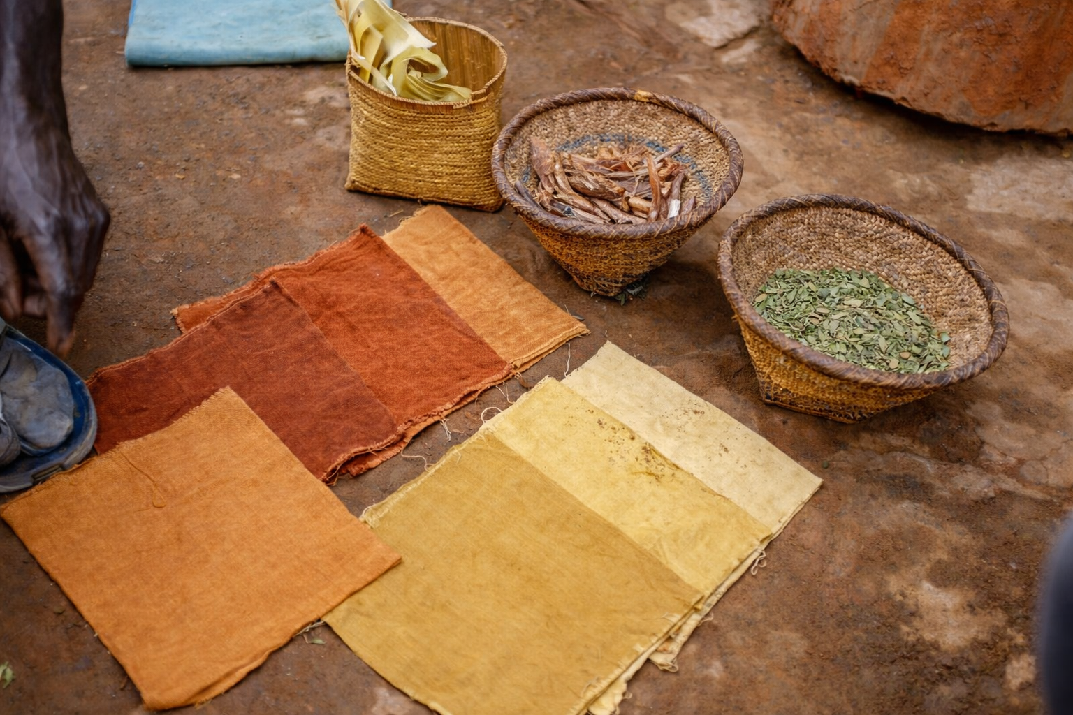 Le bogolan repose sur une chimie ancestrale. Le tissu est d’abord imprégné d’une décoction végétale (feuilles, écorces, plantes locales riches en tanins). Cette infusion prépare la fibre.