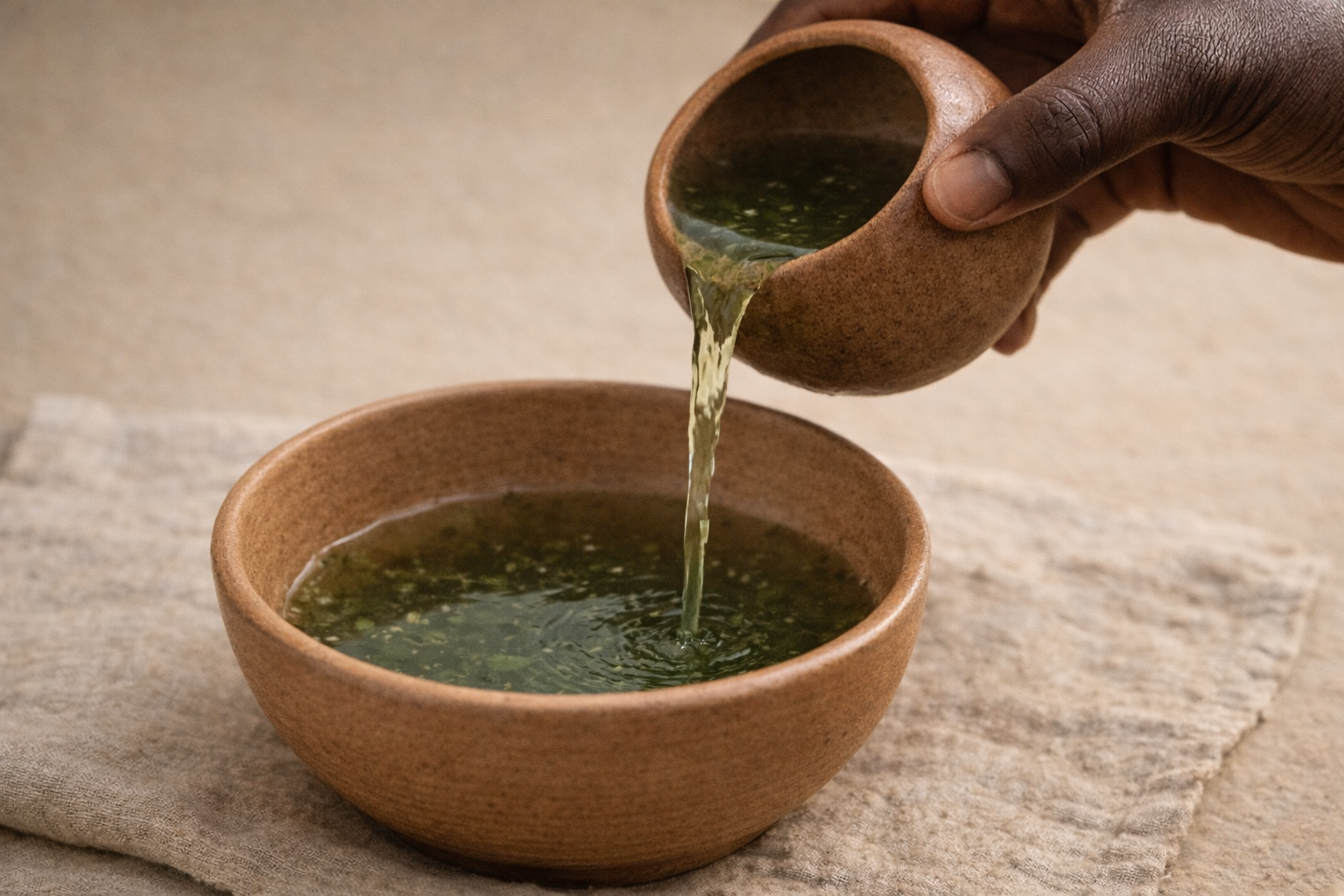 Traditionnellement, on utilise des parties séchées de la plante — racines, tiges ou feuilles selon les régions — préparées lentement en décoction ou en infusion. L’eau se transforme doucement. Elle se charge de la plante, s’assombrit parfois, dégage une odeur végétale profonde, presque terreuse.