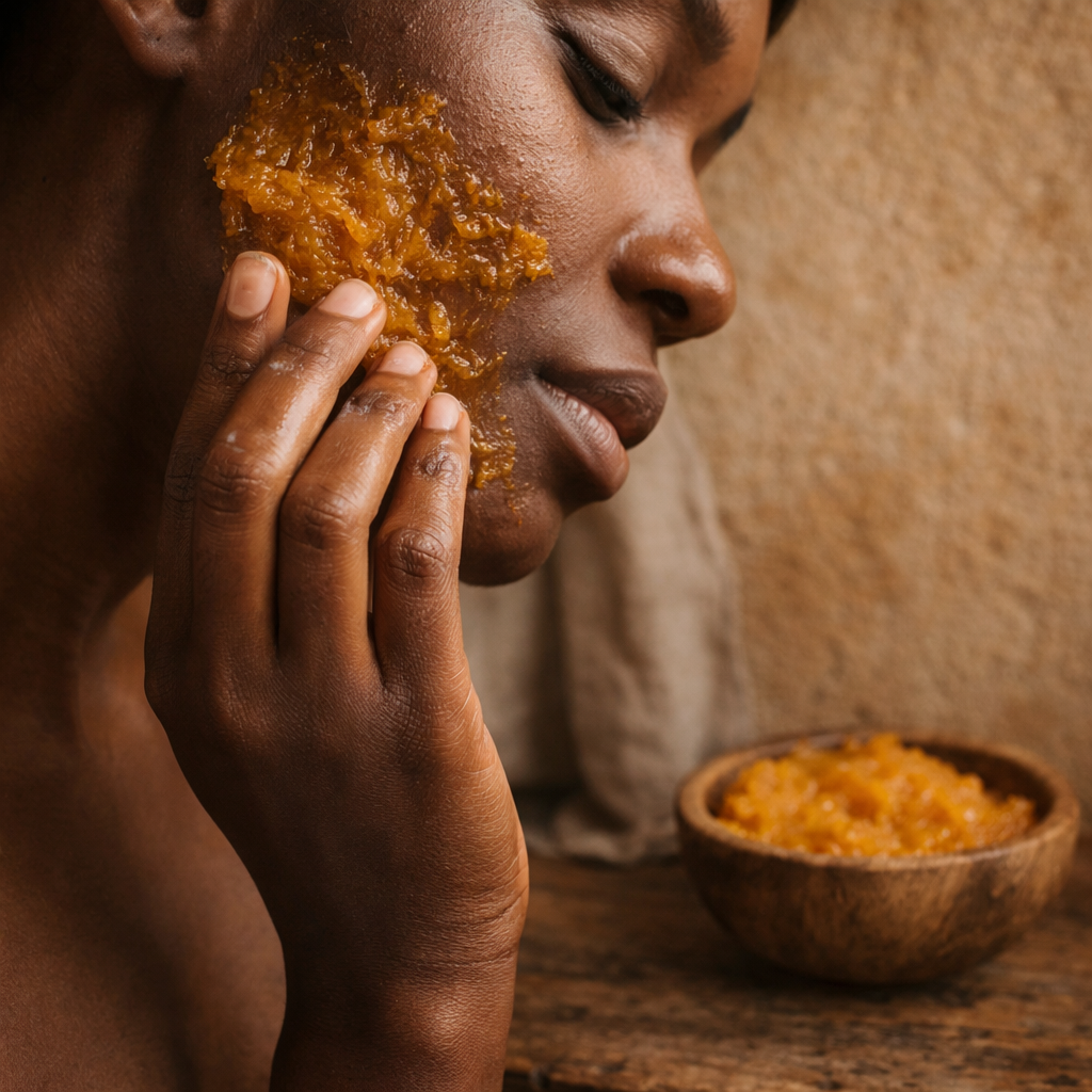 En Afrique, la mangue dépasse largement l'idée d'un simple fruit sucré. Elle appartient aux saisons, aux marchés, aux souvenirs d'enfance, aux arbres familiers, aux mains qui coupent, pressent, partage. Elle est aussi devenue une matière de soin, à travers sa pulpe, son noyau et surtout le beurre que l'on en tire. Pour le corps comme pour les cheveux texturés, elle évoque une même promesse : nourrir sans brusquer.