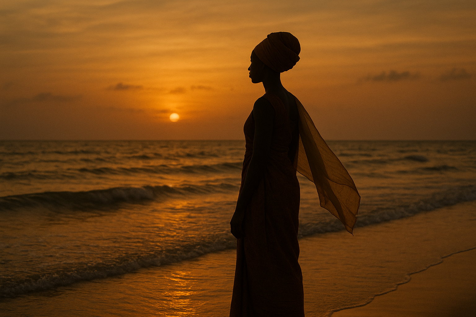 Les anciens de Kabrousse racontent qu’Aline allait méditer sur la plage, face à l’Atlantique. Elle y priait longuement, debout, les pieds dans le sable. On disait qu’elle « parlait à la mer » : non par superstition, mais parce qu’elle écoutait le vivant, le mouvement des vagues comme la voix des ancêtres. Dans la tradition Diola, l’eau est mémoire, souffle et guérison : c’est là qu’Aline puisait la force de résister sans haine.