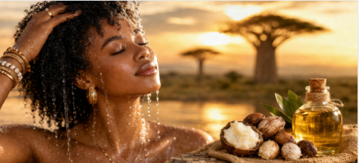 Le karité, par exemple, n'est pas qu'une richesse végétale. C'est aussi une mémoire du geste lent, une texture qui protège les zones vulnérables, une façon de refermer la fibre avec douceur. Les huiles végétales, elles aussi, racontent quelque chose de cette continuité : paumes réchauffées, longueurs lissées, pointes enveloppées, matière calmée. Le soin ne s'impose pas. Il accompagnait.