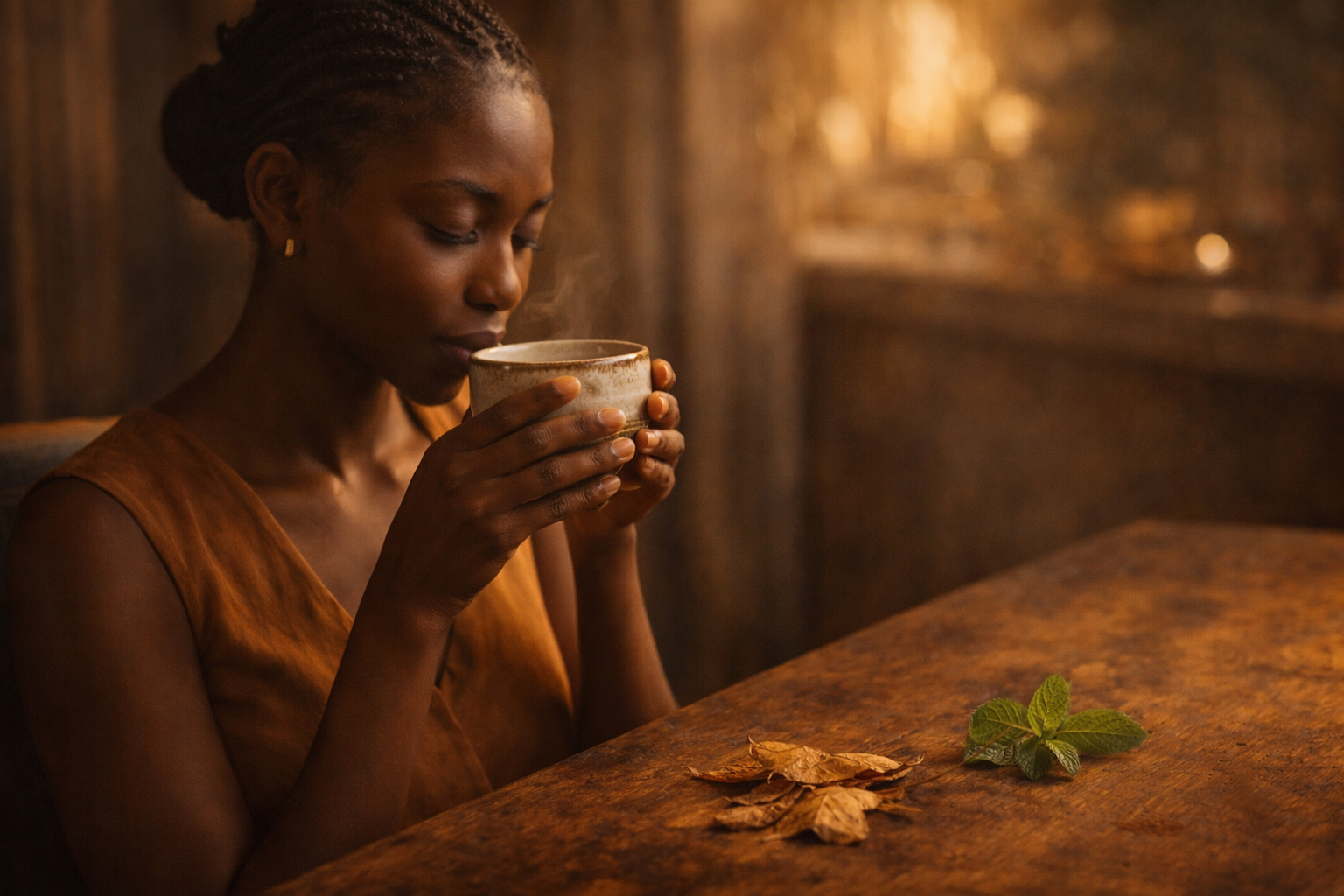 Objectif : S’offrir un moment de clarté intérieure. Soutenir la digestion, l’équilibre et la sensation de légèreté. Créer une pause consciente, enracinée dans les traditions d’Afrique de l’Ouest, sans attente de résultat.